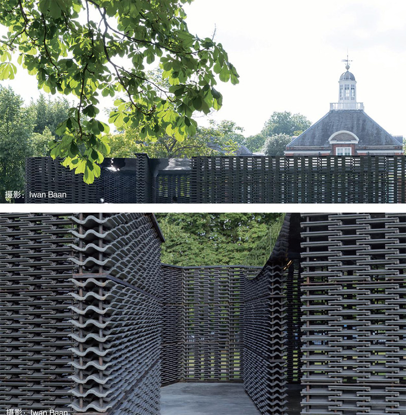 這次她用水泥瓦設計的展亭,以兩個長方形體量組合成庭院空間,通過運用光與水的元素,營造出墨西哥民居的感覺,同時也和倫敦的文化環境產生聯系。